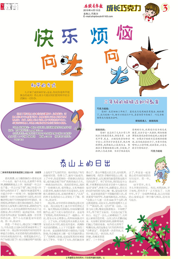 《安徽青年报·学生周刊》励志启智,开阔视野,净化心灵,陶冶情操,参与互动,集新闻性、知识性、趣味性、互动性为一体,是小学生成长的良师益友、参与互动的平台、沟通老师家长的纽带。