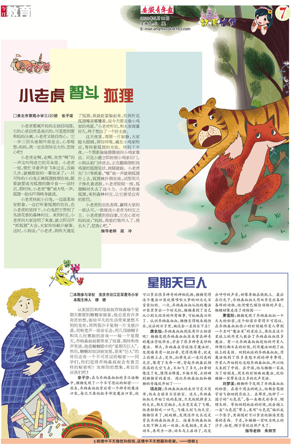 《安徽青年报·学生周刊》励志启智,开阔视野,净化心灵,陶冶情操,参与互动,集新闻性、知识性、趣味性、互动性为一体,是小学生成长的良师益友、参与互动的平台、沟通老师家长的纽带。