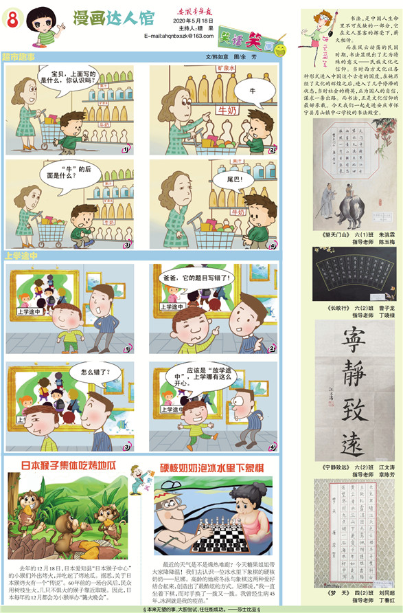 《安徽青年报·学生周刊》励志启智,开阔视野,净化心灵,陶冶情操,参与互动,集新闻性、知识性、趣味性、互动性为一体,是小学生成长的良师益友、参与互动的平台、沟通老师家长的纽带。
