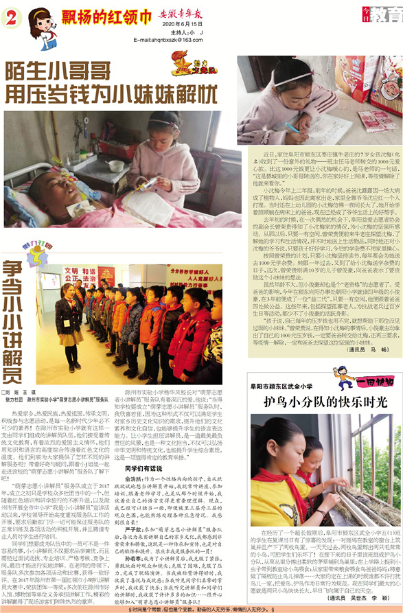 《安徽青年报·学生周刊》励志启智,开阔视野,净化心灵,陶冶情操,参与互动,集新闻性、知识性、趣味性、互动性为一体,是小学生成长的良师益友、参与互动的平台、沟通老师家长的纽带。