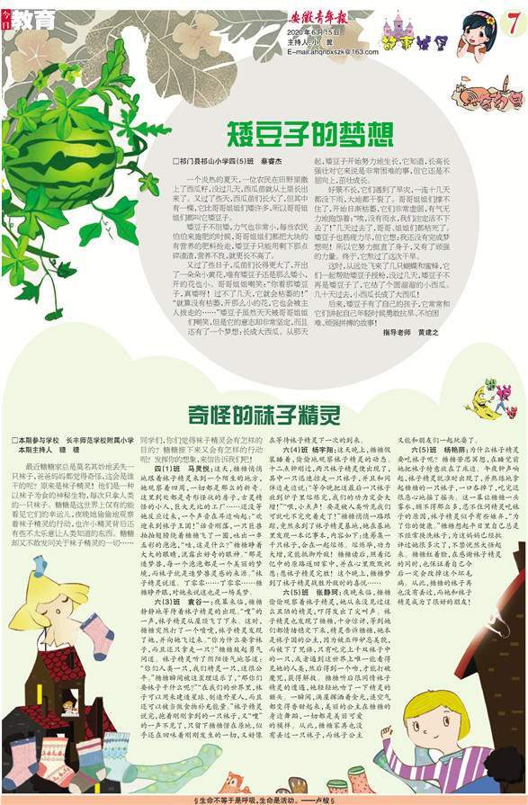 《安徽青年报·学生周刊》励志启智,开阔视野,净化心灵,陶冶情操,参与互动,集新闻性、知识性、趣味性、互动性为一体,是小学生成长的良师益友、参与互动的平台、沟通老师家长的纽带。