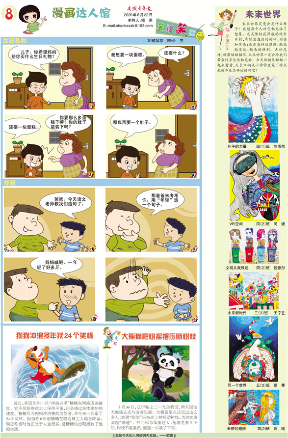 《安徽青年报·学生周刊》励志启智,开阔视野,净化心灵,陶冶情操,参与互动,集新闻性、知识性、趣味性、互动性为一体,是小学生成长的良师益友、参与互动的平台、沟通老师家长的纽带。