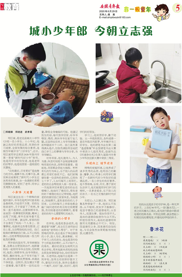 《安徽青年报·学生周刊》励志启智,开阔视野,净化心灵,陶冶情操,参与互动,集新闻性、知识性、趣味性、互动性为一体,是小学生成长的良师益友、参与互动的平台、沟通老师家长的纽带。