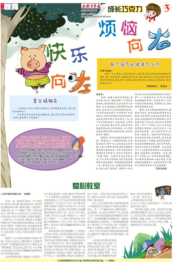 《安徽青年报·学生周刊》励志启智,开阔视野,净化心灵,陶冶情操,参与互动,集新闻性、知识性、趣味性、互动性为一体,是小学生成长的良师益友、参与互动的平台、沟通老师家长的纽带。
