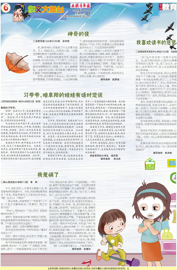 《安徽青年报·学生周刊》励志启智,开阔视野,净化心灵,陶冶情操,参与互动,集新闻性、知识性、趣味性、互动性为一体,是小学生成长的良师益友、参与互动的平台、沟通老师家长的纽带。