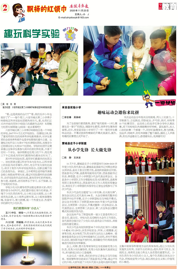 《安徽青年报·学生周刊》励志启智,开阔视野,净化心灵,陶冶情操,参与互动,集新闻性、知识性、趣味性、互动性为一体,是小学生成长的良师益友、参与互动的平台、沟通老师家长的纽带。
