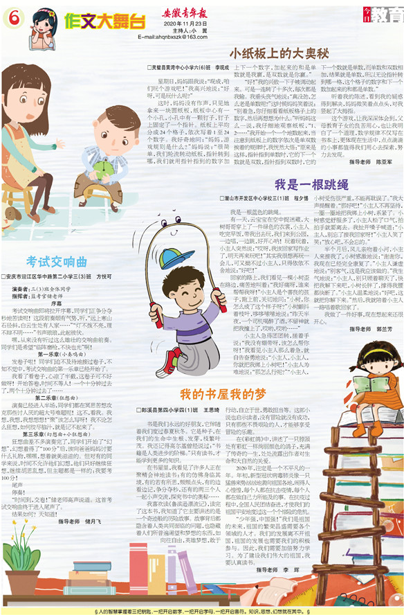 《安徽青年报·学生周刊》励志启智,开阔视野,净化心灵,陶冶情操,参与互动,集新闻性、知识性、趣味性、互动性为一体,是小学生成长的良师益友、参与互动的平台、沟通老师家长的纽带。