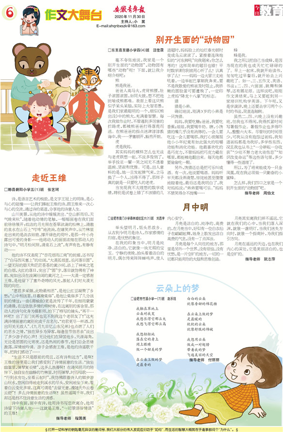 《安徽青年报·学生周刊》励志启智,开阔视野,净化心灵,陶冶情操,参与互动,集新闻性、知识性、趣味性、互动性为一体,是小学生成长的良师益友、参与互动的平台、沟通老师家长的纽带。
