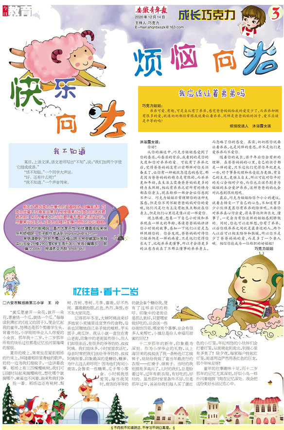 《安徽青年报·学生周刊》励志启智,开阔视野,净化心灵,陶冶情操,参与互动,集新闻性、知识性、趣味性、互动性为一体,是小学生成长的良师益友、参与互动的平台、沟通老师家长的纽带。