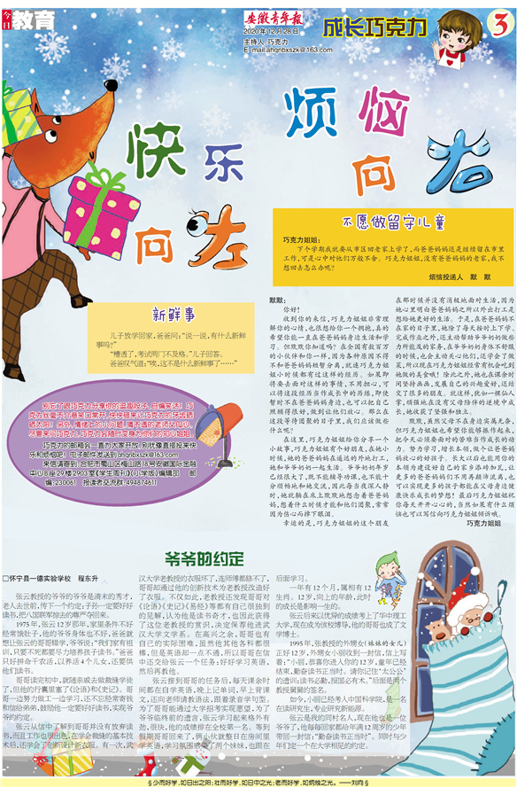 《安徽青年报·学生周刊》励志启智,开阔视野,净化心灵,陶冶情操,参与互动,集新闻性、知识性、趣味性、互动性为一体,是小学生成长的良师益友、参与互动的平台、沟通老师家长的纽带。