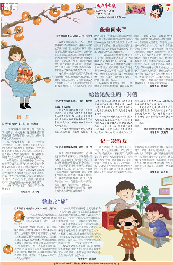 《安徽青年报·学生周刊》励志启智,开阔视野,净化心灵,陶冶情操,参与互动,集新闻性、知识性、趣味性、互动性为一体,是小学生成长的良师益友、参与互动的平台、沟通老师家长的纽带。