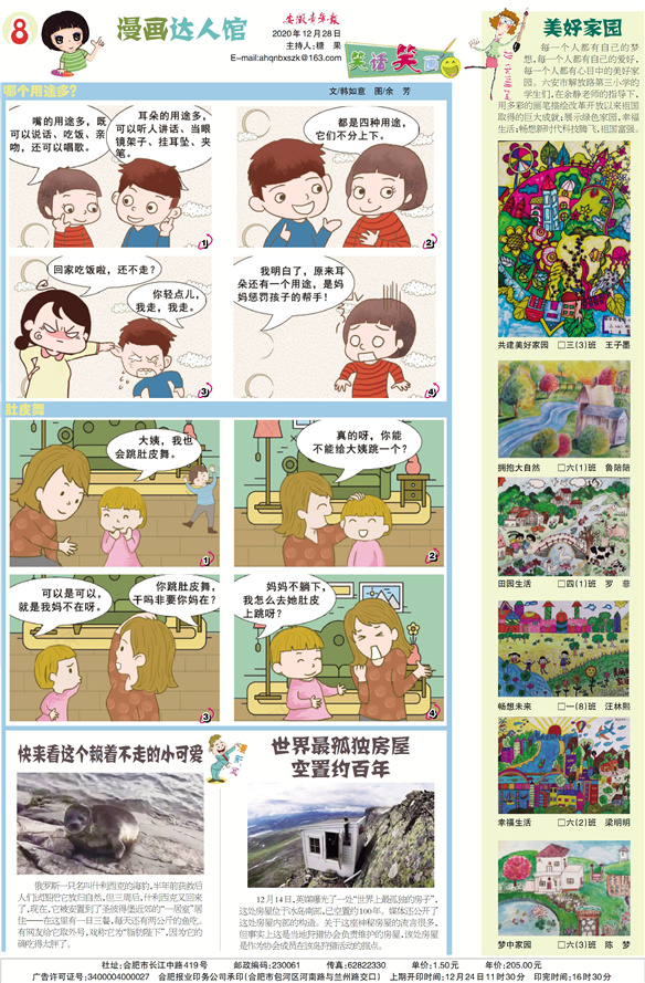 《安徽青年报·学生周刊》励志启智,开阔视野,净化心灵,陶冶情操,参与互动,集新闻性、知识性、趣味性、互动性为一体,是小学生成长的良师益友、参与互动的平台、沟通老师家长的纽带。