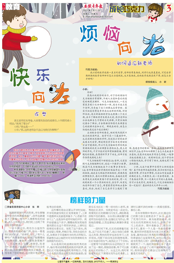 《安徽青年报·学生周刊》励志启智,开阔视野,净化心灵,陶冶情操,参与互动,集新闻性、知识性、趣味性、互动性为一体,是小学生成长的良师益友、参与互动的平台、沟通老师家长的纽带。