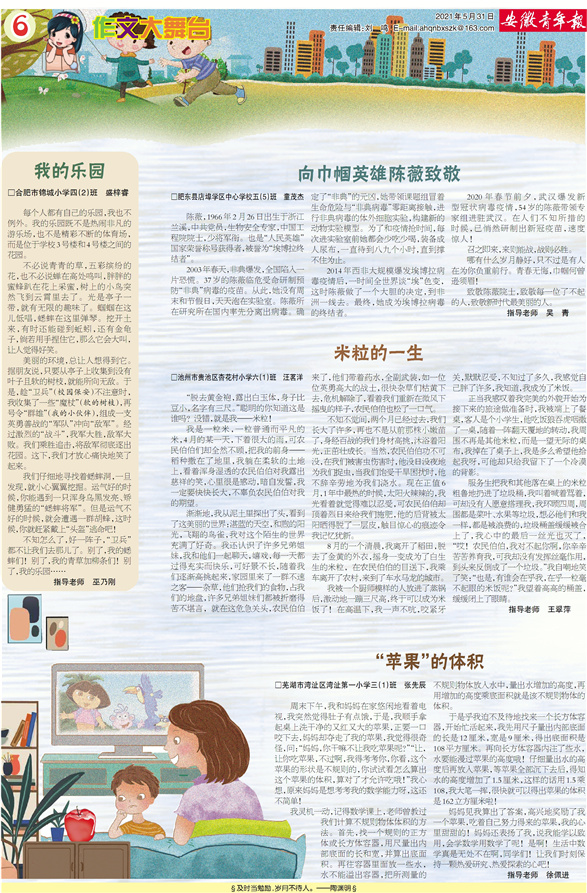 我的乐园 向巾帼英雄陈薇致敬 米粒的一生 “苹果”的体积