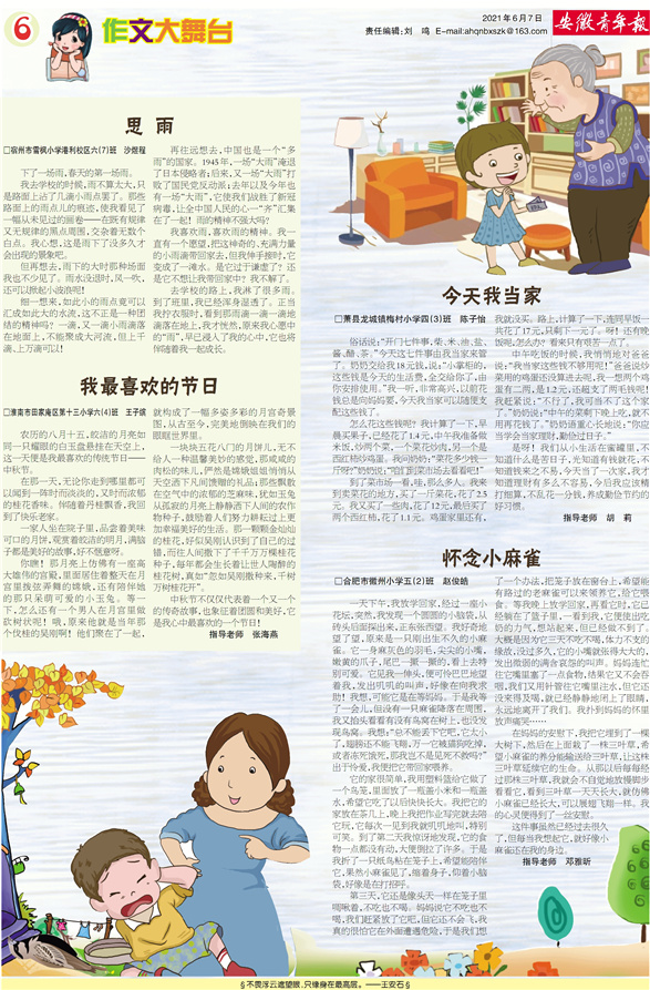 思 雨 我最喜欢的节日 今天我当家 怀念小麻雀