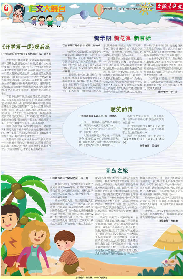 《开学第一课》观后感 新学期 新气象 新目标 爱笑的我 青岛之旅