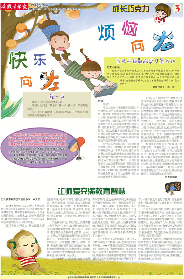 《安徽青年报·学生周刊》励志启智,开阔视野,净化心灵,陶冶情操,参与互动,集新闻性、知识性、趣味性、互动性为一体,是小学生成长的良师益友、参与互动的平台、沟通老师家长的纽带。