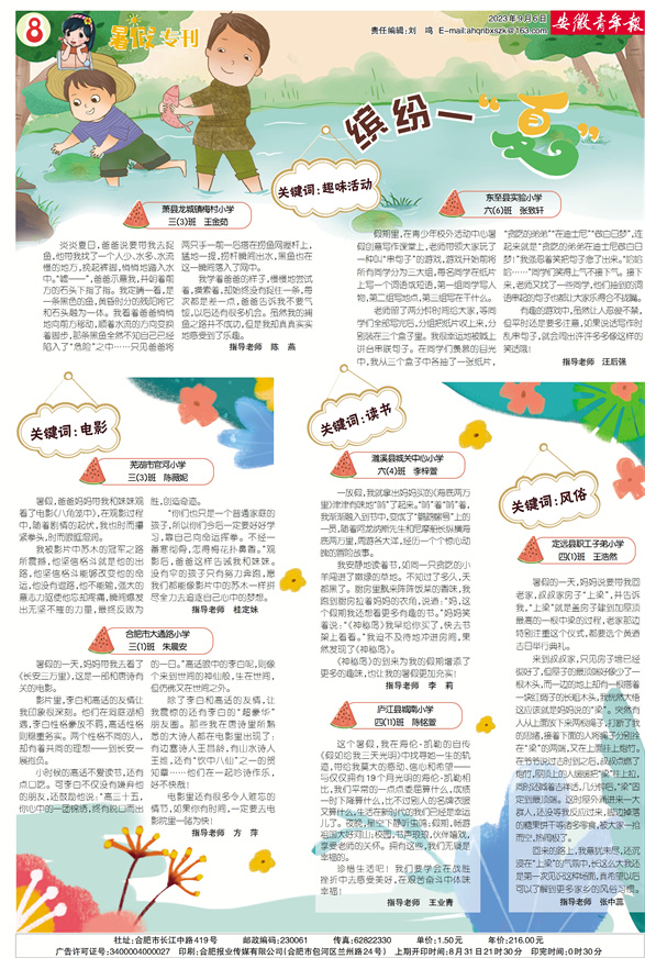 《安徽青年报·学生周刊》励志启智,开阔视野,净化心灵,陶冶情操,参与互动,集新闻性、知识性、趣味性、互动性为一体,是小学生成长的良师益友、参与互动的平台、沟通老师家长的纽带。