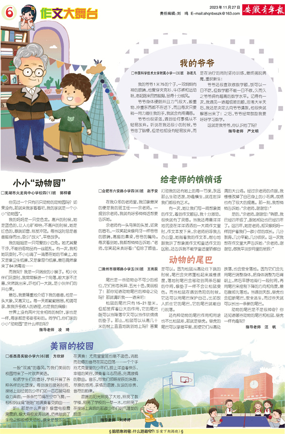 我的爷爷 小小“动物园” 给老师的悄悄话 动物的尾巴 美丽的校园