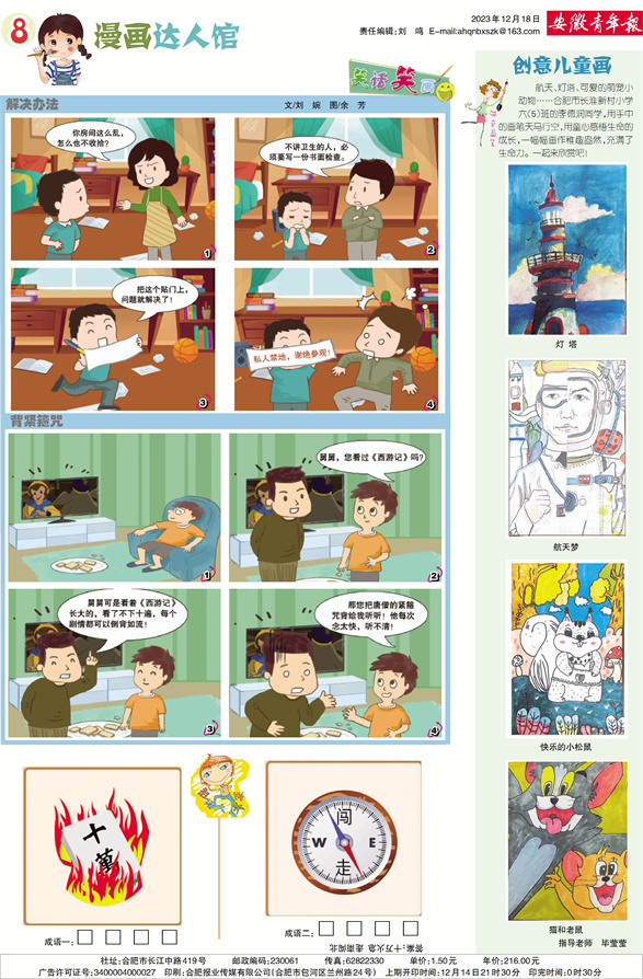 《安徽青年报·学生周刊》励志启智,开阔视野,净化心灵,陶冶情操,参与互动,集新闻性、知识性、趣味性、互动性为一体,是小学生成长的良师益友、参与互动的平台、沟通老师家长的纽带。