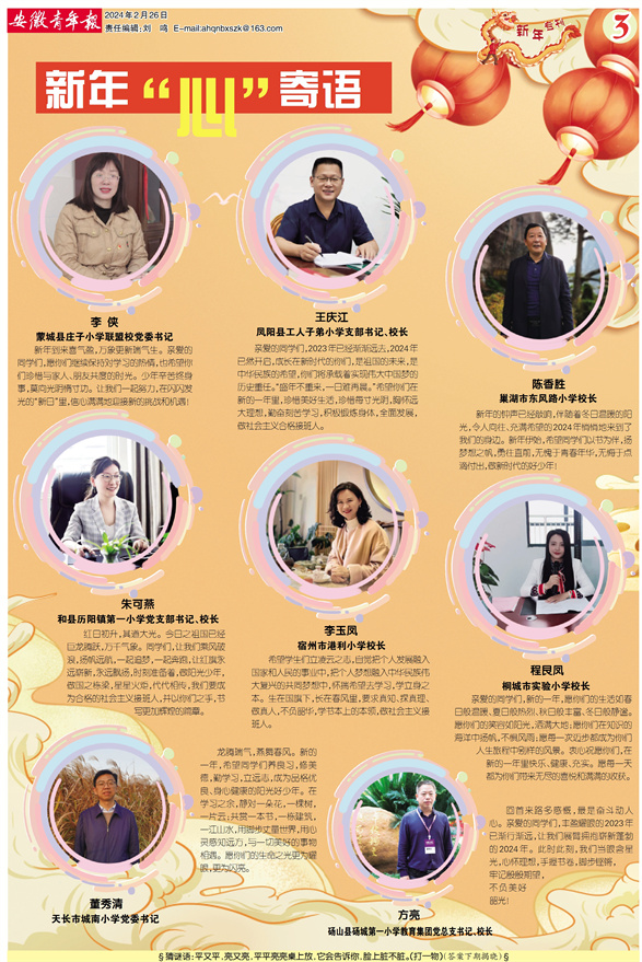 《安徽青年报·学生周刊》励志启智,开阔视野,净化心灵,陶冶情操,参与互动,集新闻性、知识性、趣味性、互动性为一体,是小学生成长的良师益友、参与互动的平台、沟通老师家长的纽带。