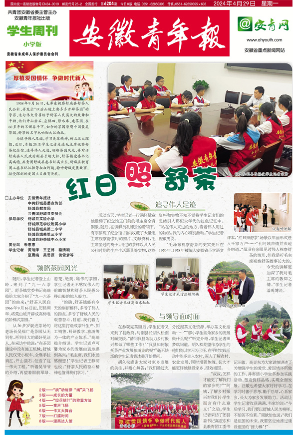 《安徽青年报·学生周刊》励志启智,开阔视野,净化心灵,陶冶情操,参与互动,集新闻性、知识性、趣味性、互动性为一体,是小学生成长的良师益友、参与互动的平台、沟通老师家长的纽带。