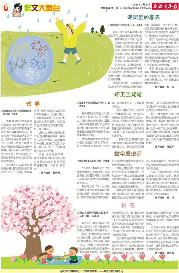 试 卷 诗词里的春天 环卫工姥姥 数字魔法师 桃 花