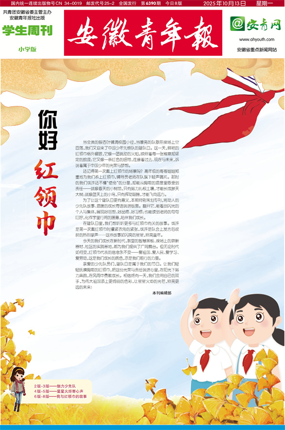 《安徽青年报·学生周刊》励志启智,开阔视野,净化心灵,陶冶情操,参与互动,集新闻性、知识性、趣味性、互动性为一体,是小学生成长的良师益友、参与互动的平台、沟通老师家长的纽带。