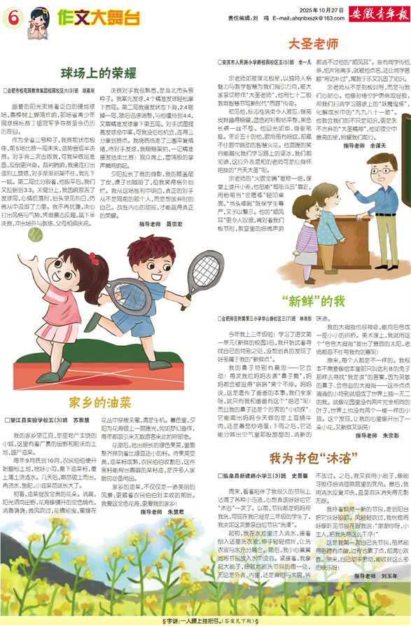 球场上的荣耀 大圣老师 家乡的油菜 “新鲜”的我 我为书包“沐浴”