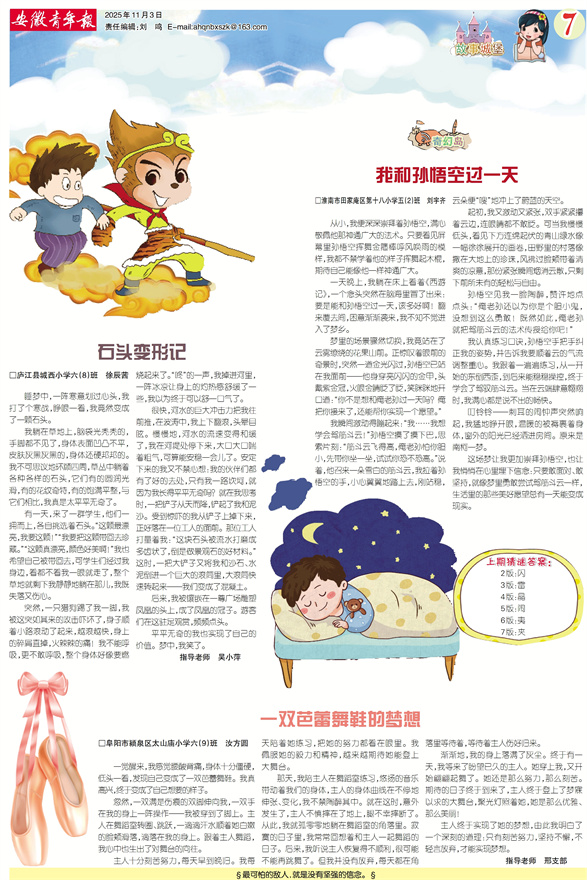 《安徽青年报·学生周刊》励志启智,开阔视野,净化心灵,陶冶情操,参与互动,集新闻性、知识性、趣味性、互动性为一体,是小学生成长的良师益友、参与互动的平台、沟通老师家长的纽带。