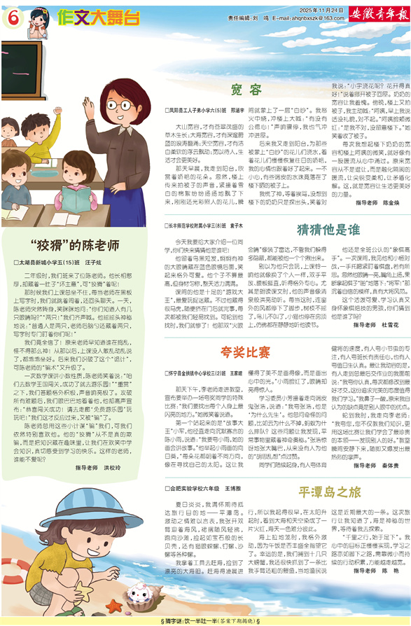 《安徽青年报·学生周刊》励志启智,开阔视野,净化心灵,陶冶情操,参与互动,集新闻性、知识性、趣味性、互动性为一体,是小学生成长的良师益友、参与互动的平台、沟通老师家长的纽带。