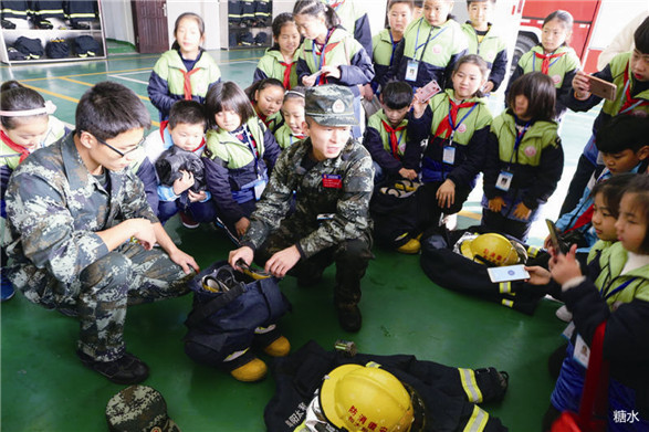 太和县民安路小学 萌娃走进消防队 □黄丽萍 近日,太和民安路小学师生走进太和县消防大队,开展参观消防大队的实践活动。活动中,同学们在消防员叔叔的指导下体验了各种消防器材的使用方法。同学们学到很多消防知识,体会到消防员叔叔工作的辛苦。此次活动的开展,使同学们进一步了解消防、认识消防,大大增强了同学们的消防安全意识和自我防范能力。