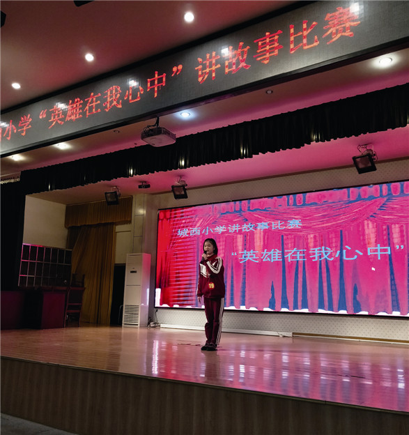 池州市贵池区城西小学 讲英雄故事 传革命精神 □杨 憬 为鼓励同学们从小树立远大抱负,学习和继承民族精神,不断增强民族自信心和自豪感。近日,池州市贵池区城西小学少先大队在校多功能厅举行了五、六年级“英雄在我心中”讲故事比赛。 董存瑞、王二小、江姐、小萝卜头、雷锋、刘翔……不管是战争年代的,还是和平时期的,他们都是同学们心目中的英雄,他们身上都有值得同学们学习的坚强不屈、顽强拼搏的精神。相信这次活动的举办一定能给予学生一次精神的洗礼,促进他们健康快乐成长。