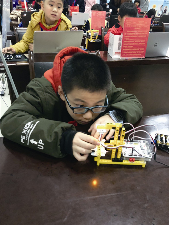 小创客们学得有劲,家长也全力支持。仇澳宇的妈妈徐笑实和陆玉农的妈妈许莉丽都表示,参加创客社团,学习科学知识,除了增强动手能力,还能让孩子思维创新。“有时候我们大人想不到的办法,孩子能想到。我觉得在创作发明的过程中,失败了没有关系,最重要的是参与,以及在参与过程中的成长和感悟。” 亳州路小学办公室副主任王菁表示,信息技术教育,是学校的特色教育,小小科学家创客社团,是其发展的一个方面。以面促点共发展,“我们希望,以信息技术教育特色带动其他学科优质发展,希望能让更多学生学习科学,并在动手实践中,进一步提升创新思维能力,实现更全面发展。” 小创客在比赛现场