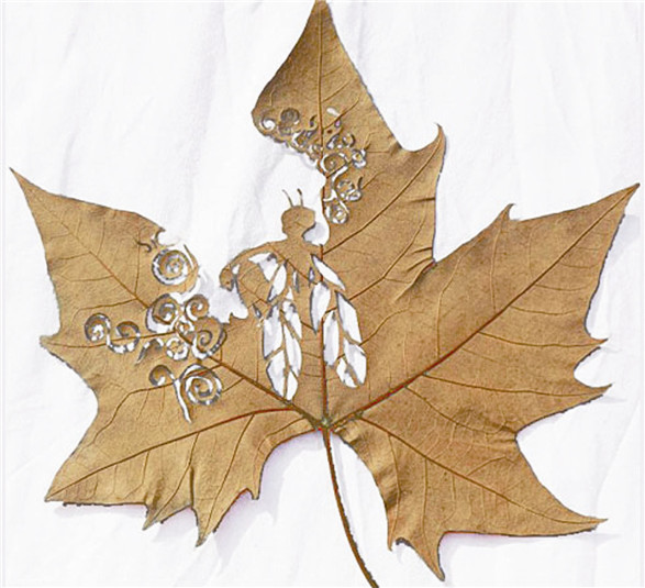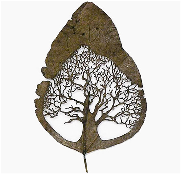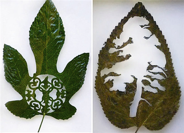 树叶上的精美雕刻:西班牙艺术家Lorenzo Duran,把树叶洗净之后烘干,然后用类似中国剪纸这样的工艺,在树叶上雕刻出复杂图案,就成了下面这些美妙的艺术品。