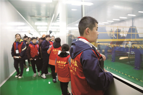 参观过程中,王阿姨还拿出两个瓶子,让学生记者一手拿一个,感受重量的不同。待每一位学生记者都体验完后,王阿姨讲解道:“是不是分量少的这个瓶子,反倒重一些?因为这个瓶子里装的是球形石英粉,它是实心的。另一个瓶中装的是空心玻璃微珠,它量多且轻,是空心的。”跟随王阿姨,学生记者还了解到浮法玻璃的相关知识及其在生活中的运用。但有人忍不住问了,这和我们改革开放的活动主题有什么关系呢?嗯,关系大着哩!往后看!