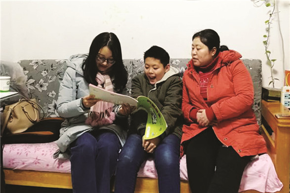 陈富胜是该校党支部副书记,兼任六(2)班数学老师,假期里,他与该班班主任周润华老师一起统筹安排精心准备,一同前往同学们的家中进行家访。周润华老师为每位同学精心准备了一份新年“红包”,寄托了她对同学们的深切期望。陈副书记则将同学们本学期的学科成绩和课堂表现一一记录在册,对同学们进行有针对性地帮扶,为同学们指明了今后的努力方向。在贺欣悦同学家中,朴素整洁的屋里,赫然印入眼帘的是桌子上那一本厚厚的《世说新语》。欣悦说:“老师,这是我最近在读的新书。这个寒假里,我给自己安排了充实的学习内容。”欣悦的爸爸妈妈很是欣慰,并感激地对两位老师说:“孩子现在变得开朗自信了,尤其热爱阅读,学习成绩也有了很大的进步。我们一家人由衷感激老师们对欣悦的鼓励和培养。”