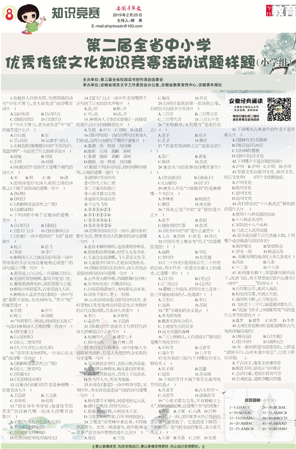 优秀传统文化知识竞赛活动试题样题(小学组)