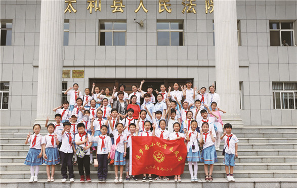 阳春三月,户外体验,走进良庄是小记者学做雷锋最好的体现,为小树浇浇水,松松土,他们不怕流汗;清明祭英烈,瞻仰烈士纪念馆,他们懂得了来之不易的幸福童年;顶着骄阳,迎着热浪,“法校共建”引领他们步入太和法院这座神圣的殿堂,把学法、懂法、守法的美德铭记心上;九九重阳,慰问老人,把尊老、敬老铭记心上;踩着飘飞的金黄落叶,走进消防队,学消防、懂消防、用消防,把防火安全铭记心上……