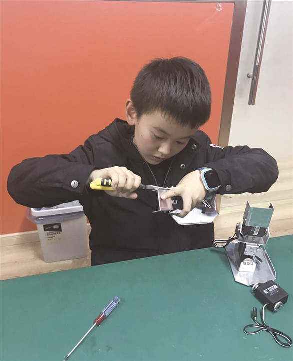 大家好,我是萌娃袁恒毅,我的爱好有很多,但我最喜欢机器人,也喜欢动手制作机器人。妈妈说,我从小就对各种各样的能跑会动的东西充满兴趣。有一次,妈妈带我去参加了中国科学技术大学的开放日活动,在那里,我看到了各式各样的机器人,在大哥哥大姐姐的遥控指挥下,有的唱歌,有的跳舞,有的可以端茶倒水……好酷!好厉害!从那一刻起,我便深深地爱上了机器人。