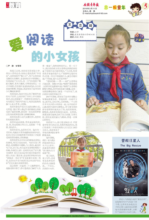 《安徽青年报·学生周刊》励志启智,开阔视野,净化心灵,陶冶情操,参与互动,集新闻性、知识性、趣味性、互动性为一体,是小学生成长的良师益友、参与互动的平台、沟通老师家长的纽带。