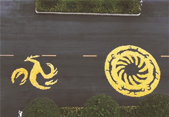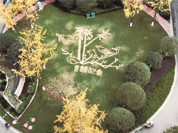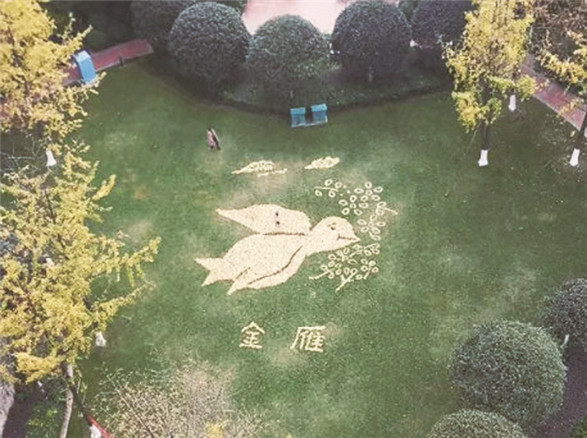 不久前,在成都某单位内,保洁员们通力合作,耗时2个多小时完成了银杏叶“太阳神鸟”图案。之后某小区内的绿化养护工们也行动起来,创作出金雁、喜鹊迎春等造型。如此精彩,成都市民也忍不住出手了,火锅、熊猫等图案纷纷登场。
