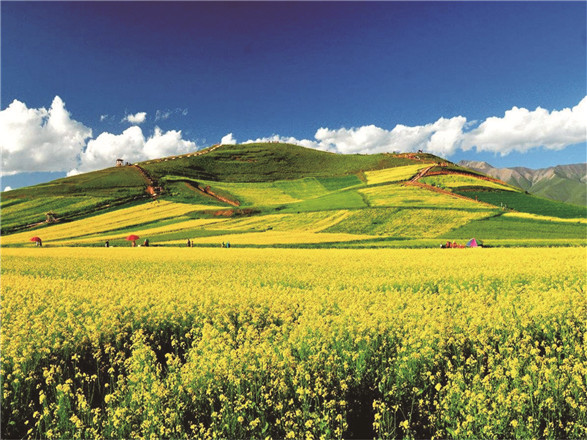 □天长市第一小学六(1)班 汤 晟 世界那么大,我想去看看! 我的大脚走过很多地方,最难忘的是去年暑假在青海门源看油菜花。你们一定很奇怪吧,一般油菜花不是三、四月份就开了吗?我怎么会是暑假去看呢?没错,门源的油菜花和我们家乡的不一样。那里是全国乃至全世界最大的小油菜种植区,种植面积达50万亩。还没出发,光是听爸爸说,我脑海里就浮现那漫山遍野的油菜花。一夜未眠,真是身未动,心已远。 驱车一路向西,一路欣赏沿途风光。终于到达门源,因为海拔原因,虽然已经是7月中旬,但是那里却繁花似锦,满眼尽是漫山遍野油菜花的金黄。真是人间四月芳菲尽,山寺桃花始盛开。 极目远眺,蓝天、白云、雪山,绵延上百公里的油菜花,无边无际,宛如金黄的大海。成片的油菜花,在远处雪山的映照下,显得格外美丽。雪山用它那巍峨的山峰作一幅画布,让花朵尽情在画布上点缀绘画。置身花海,我感觉自己非常渺小。 这里的油菜花果然和我们家乡的大不一样,也和我看过的江西婺源的油菜花风格迥异。爸爸告诉我:7月初,这里就进入油菜花盛开的季节,到了中旬,油菜花竞相开放。远远望去,高原深蓝的天空、远山、流水、林海草原和村落相映成趣,变幻出一道道独具特色的迷人风光。 汽车在盘山公路蜿蜒而上,两旁的油菜花、鲜花、小草,悠闲的牛羊,时不时还会探出头和我们打个招呼,我感觉仿佛置身于画中。难怪会有“天苍苍,野茫茫,风吹草低见牛羊”的优美诗歌。坐在草场柔软的小草上,看着无数不知名的小野花,你会真正感受“乱花渐欲迷人眼”的意境,加上花香袭人,蝴蝶飞舞,令人心旷神怡。 “看,河!”爸爸的话唤醒了沉醉的我。远远望去,一条清澈的河在花海中间流淌,就像镶了两条金边的蓝色绸带。爸爸告诉我,这条河叫浩门河,它静静流淌,像母亲的乳汁,滋润这里的万物。 门源,不仅是避暑胜地,还是最美的人间天堂。 我的大脚,走在路上。 指导老师 朱少林