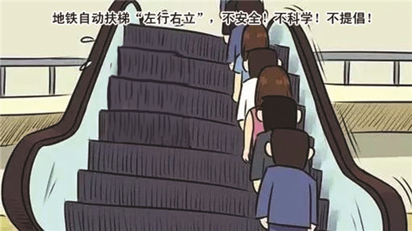 上海地铁自动扶梯不再提倡“左行右立” 近日,最新版上海地铁自动扶梯乘梯须知发布,其中没有了“左行右立”的倡导,第一条为禁止在自动扶梯上行走。上海市特种设备监督检验技术研究院的技术专家从专业角度分析并指出:地铁自动扶梯“左行右立”,不安全!不科学!不提倡!