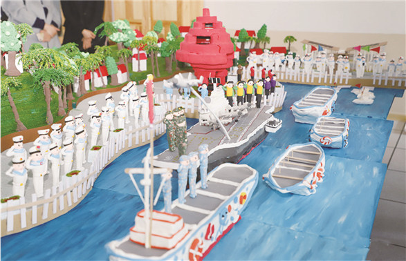 近日,在面塑艺人李成才老师的指导下,来自南京路小学的30余名学生齐动手,完成长度3米的巨幅面塑作品《我爱这蓝色的海洋》,向建国70周年致敬。作品呈现在平静的海面上,一艘艘军舰在等待检阅,岸边一列列小海军向着舰艇上飘扬的国旗庄严行礼。