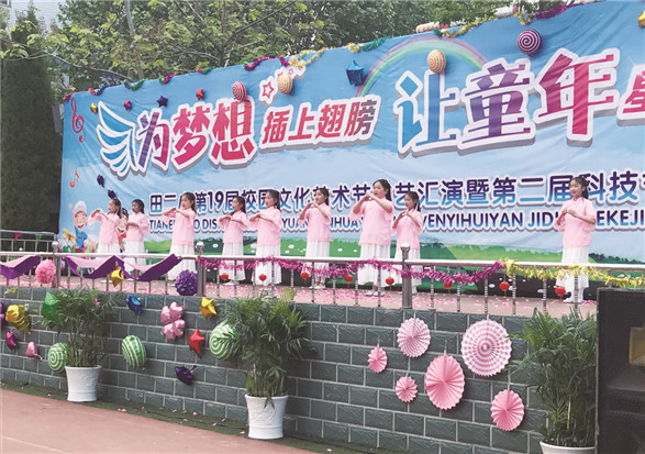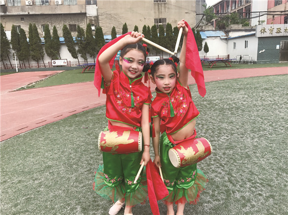 二(3)班的张逸凡和李灵婧参演的是腰鼓舞蹈《欢天喜地》,“我们喜欢跳舞,跳舞令人快乐,还能交到新朋友。”