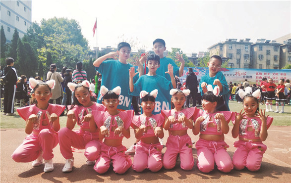三(3)班同学带来了舞蹈《学猫叫》,动感的音乐声一响起,热情高涨的观众们,跟着齐声合唱起来。 看!“他翻跟斗好厉害呀!”四(1)班程伟航带来京剧表演《盗银壶》,台下的观众为他揪心、鼓劲。这番功夫可来之不易,程伟航今年9岁,学了4年京剧,单一个前后翻动作,就学了一年多。“我以后想当京剧老师,教更多学生。”他的数学老师钱芳说,只要时间分配合理,兴趣爱好的培养,也会促进学生主动学习。