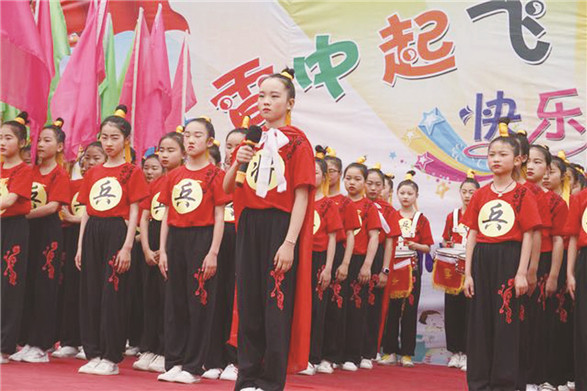 5月31日,明光市明湖学校小学部的校园里到处洋溢着节日的气氛,近4000名师生相聚在小学部操场,隆重举行了“红领巾心向党,我与祖国共成长”为主题的入队仪式暨文艺汇演活动。庆祝活动在升国旗奏国歌的过程中拉开序幕,全校师生庄重伫立在操场上看着鲜艳的五星红旗冉冉升起。