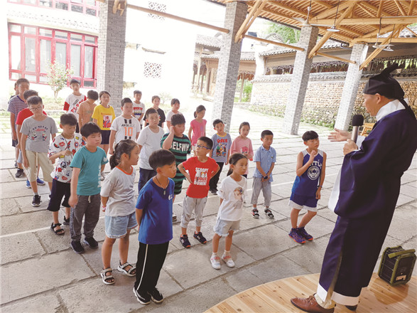 炎热的午后,我们脚步不停,随后移步守拙园,在徽州先生的带领下,体验开蒙礼,双手作揖,感谢师恩,大声分享童年的梦想。