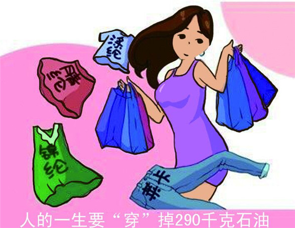 纺织所使用的纤维中,天然纤维(棉、麻、丝、毛等)的占比仅有1/4,化学纤维(涤纶、锦纶、腈纶、丙纶、维纶和氯纶等)的比重接近3/4,而90%以上的化学纤维产品都是从石油中来的。算下来,人的一生花在“穿”上的石油达到290千克。